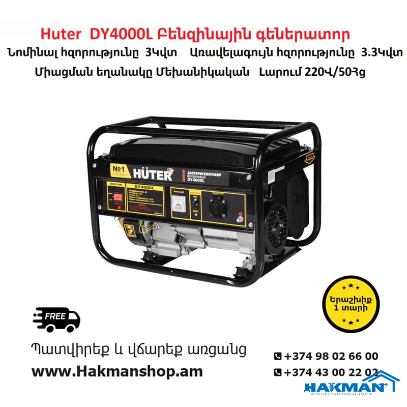 Huter DY4000L Բենզինային գեներատոր 3300 Վտ (Բենզինային գեներատոր)