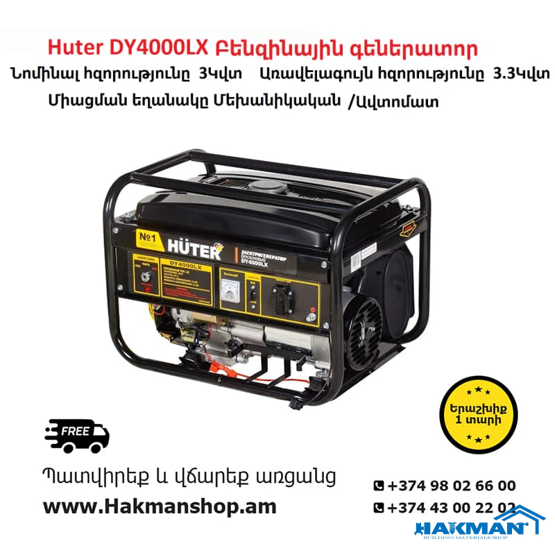 Huter DY4000LX Բենզինային գեներատոր 3.3Կվտ (Ստարտեր)